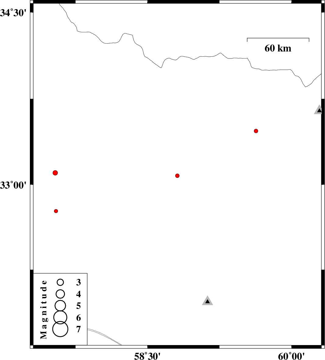 | 2015/10/17 | 06:47:09.2 | 10:17:09.2 | 33.47 | 59.63 | 14 | ML:1.9 | Khorasan(south) Province, 50 km South-East of Qaen | ||