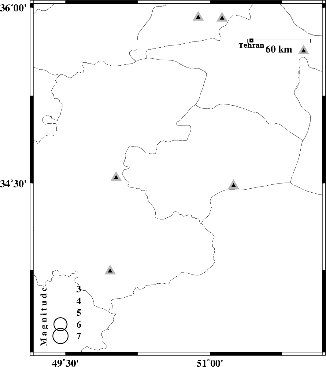 | 2015/10/21 | 01:30:13.6 | 05:00:13.6 | 34.533 | 50.667 | 15 | ML:3.3 | Qom Province, 23 km South-West of Qom | ||