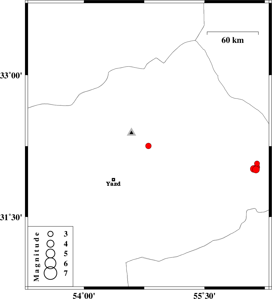 | 2015/10/25 | 08:23:23.0 | 11:53:23.0 | 32.253 | 54.802 | 14 | ML:3.2 | Yazd Province, 57 km North-East of Yazd | ||