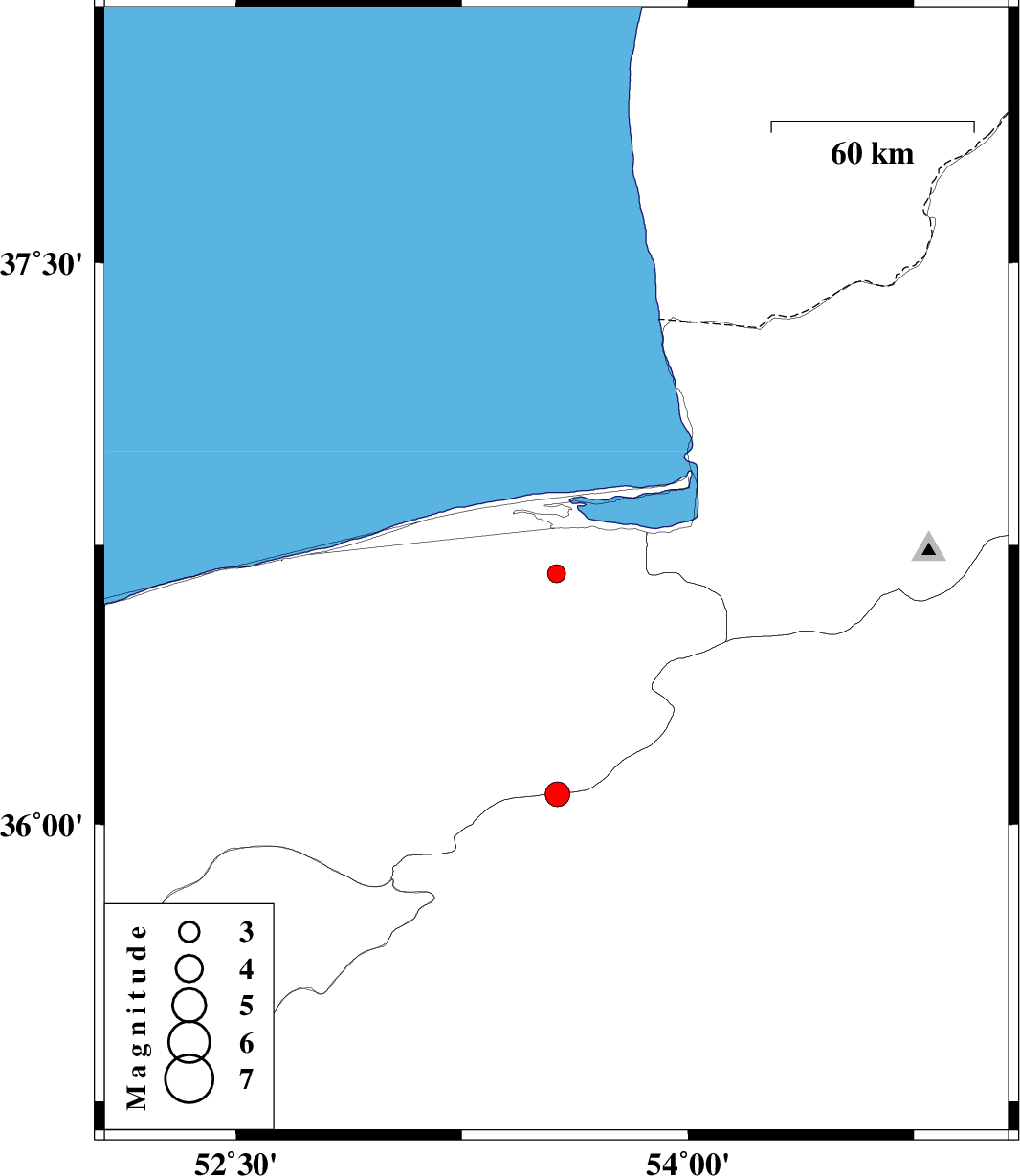 | 2015/11/05 | 01:45:26.2 | 05:15:26.2 | 36.081 | 53.567 | 14 | ML:3.6 | Semnan Province, 46 km -East of Pol-E-Sefid |