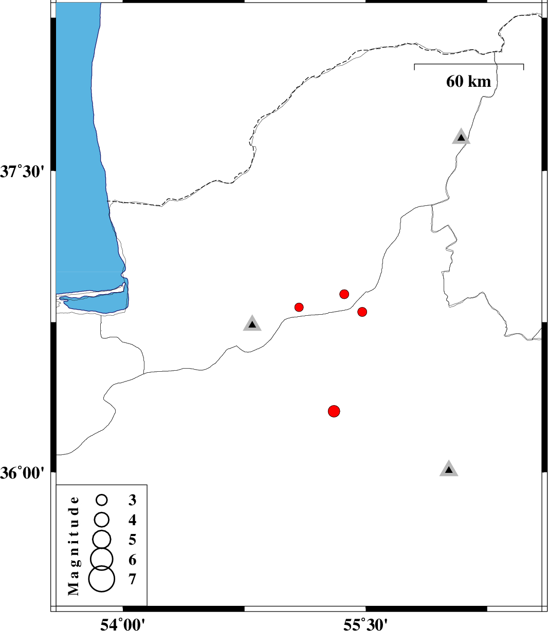 | 2015/11/07 | 15:37:51.7 | 19:07:51.7 | 36.889 | 55.366 | 8 | ML:2.5 | Golestan Province, 24 km South-East of Ramian |