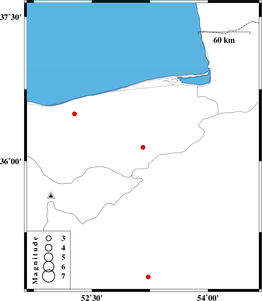 | 2015/11/18 | 00:02:20.6 | 03:32:20.6 | 36.494 | 52.276 | 14 | ML:2.5 | Mazandaran Province, 7 km of Amol | ||