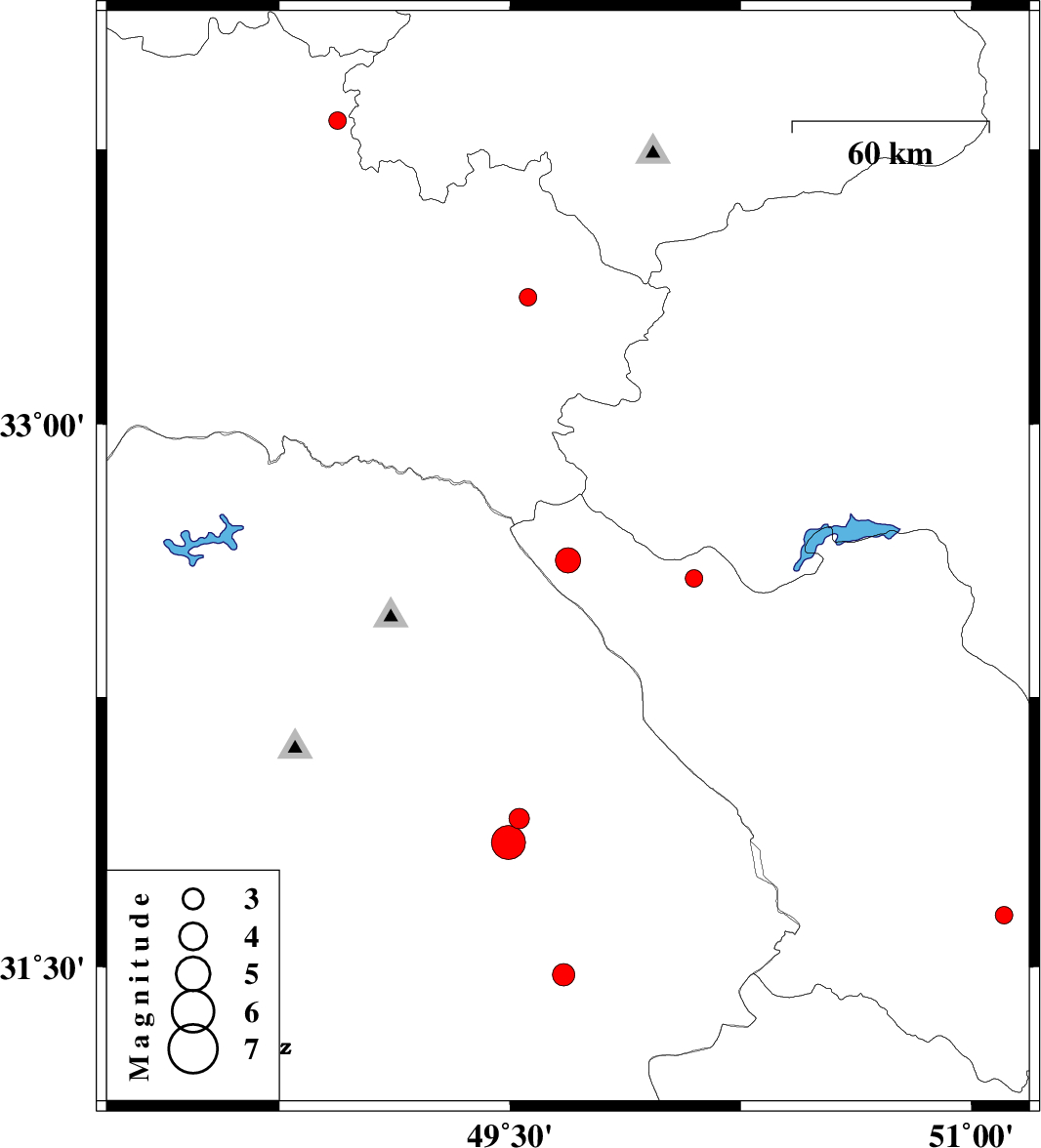 | 2015/11/12 | 01:22:44.1 | 04:52:44.1 | 33.828 | 48.939 | 6 | ML:2.6 | Lorestan Province, 18 km -East of Borujerd |