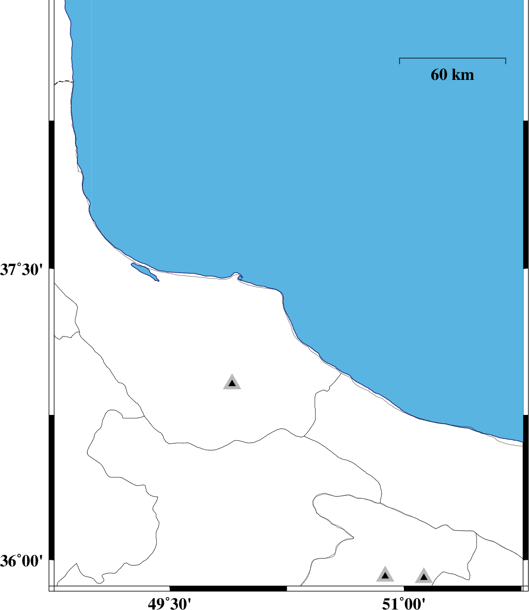 2016/01/05 | 04:43:46.5 | 08:13:46.5 | 37.365 | 50.261 | 15 | ML:3 | Caspian Sea, 25 km North of Rudsar |