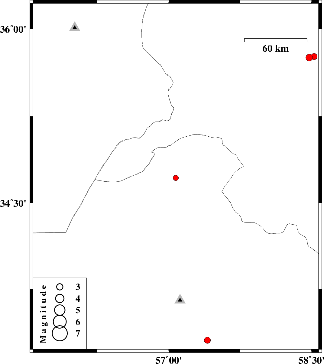 | 2016/02/10 | 22:24:02.2 | 01:54:02.2 | 33.297 | 57.407 | 15 | ML:2.9 | Yazd Province, 56 km South-East of Tabas | ||