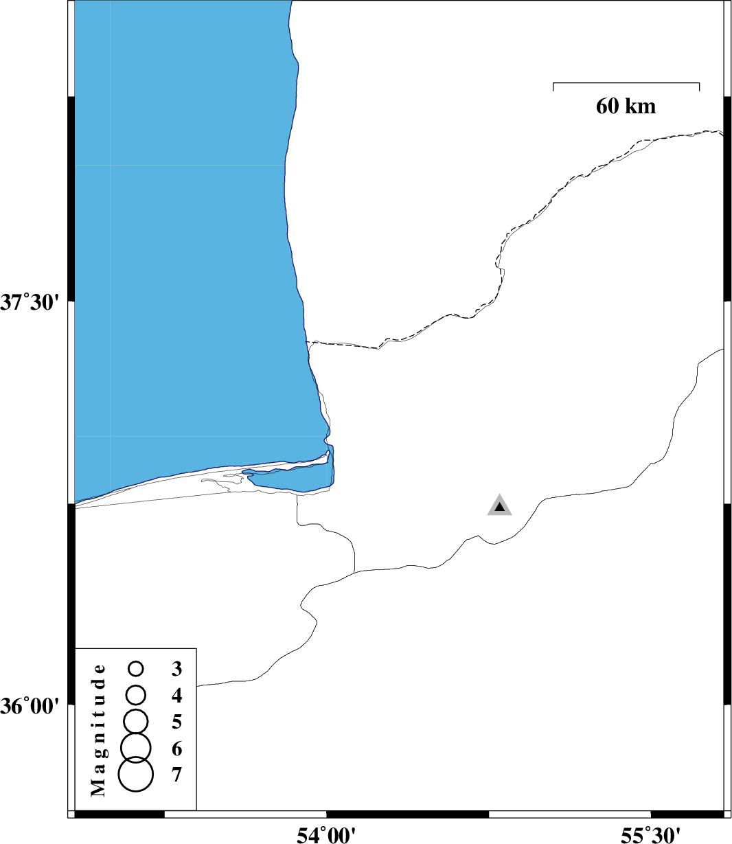 | 2016/02/28 | 22:10:36.2 | 01:40:36.2 | 37.1 | 54.336 | 16 | ML:2.6 | Golestan Province, 14 km -West of Aq Qaleh |