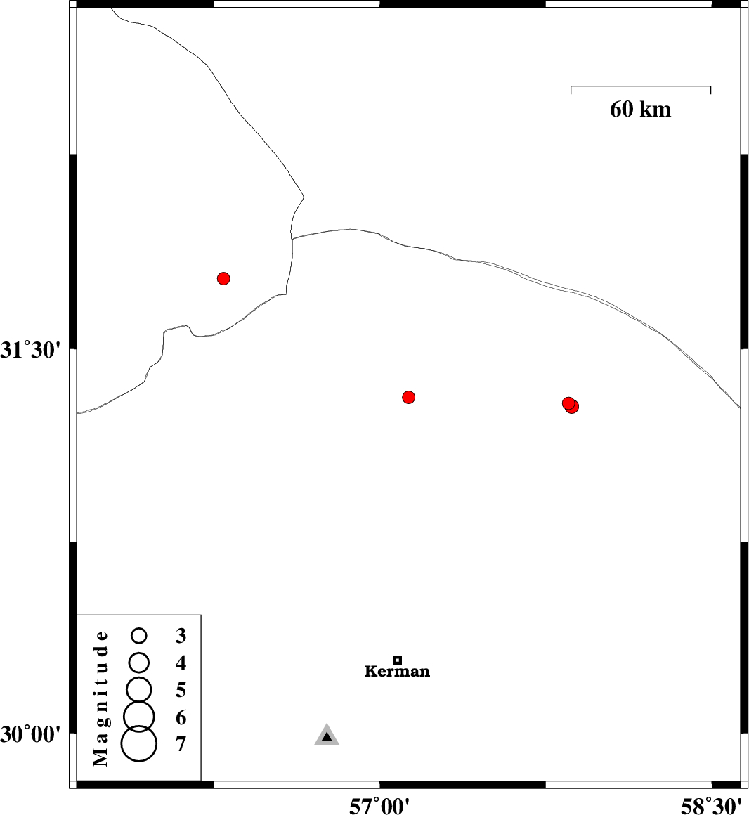 | 2016/05/23 | 00:06:23.6 | 04:36:23.6 | 31.312 | 57.13 | 14 | ML:2.6 | Kerman Province, 31 km -East of Ravar | ||