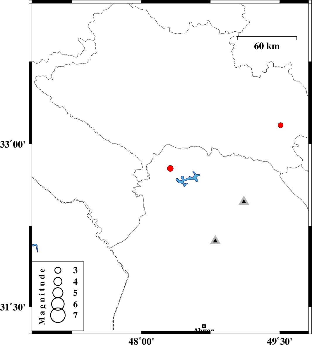 | 2016/05/21 | 19:12:52.0 | 23:42:52.0 | 32.777 | 48.313 | 15 | ML:2.9 | Khoozestan Province, 35 km North of Andimeshk | ||