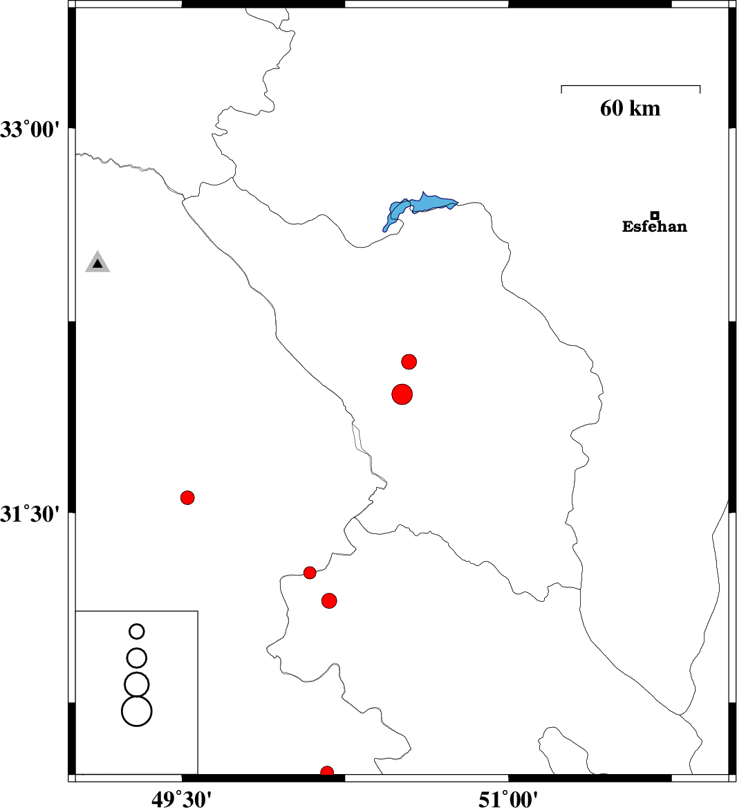 | 2016/06/29 | 09:13:52.1 | 13:43:52.1 | 31.559 | 49.526 | 15 | ML:2.8 | Khoozestan Province, 32 km North of Ramhormoz |