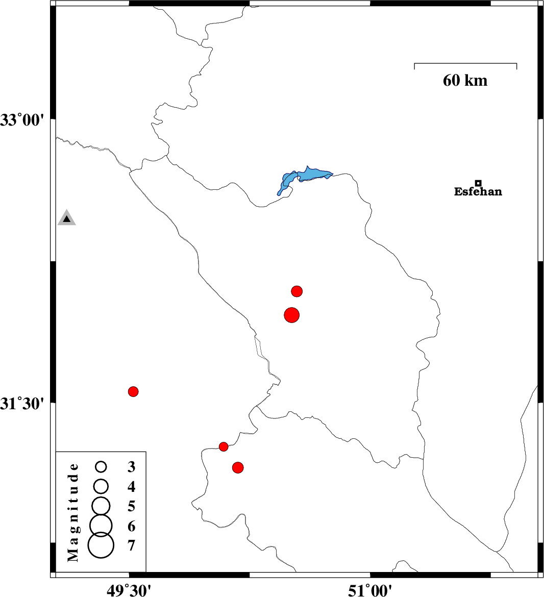 | 2016/06/29 | 09:13:52.1 | 13:43:52.1 | 31.559 | 49.526 | 15 | ML:2.8 | Khoozestan Province, 32 km North of Ramhormoz |