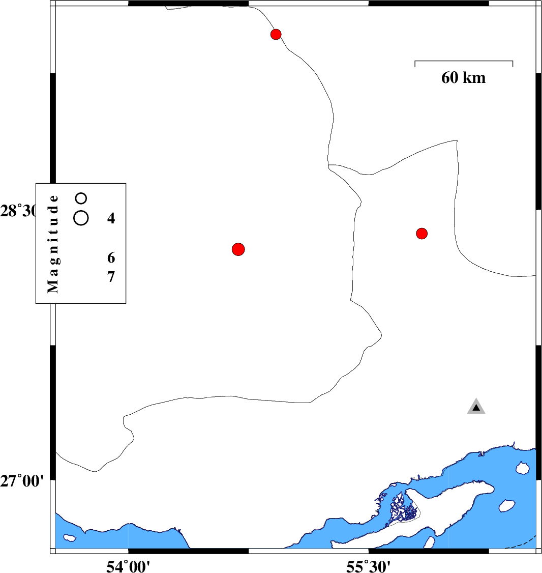 | 2016/07/12 | 22:43:05.3 | 03:13:05.3 | 26.921 | 54.808 | 15 | ML:3.5 | Hormozgan Province, 44 km North of Bandar-e lengeh | ||
