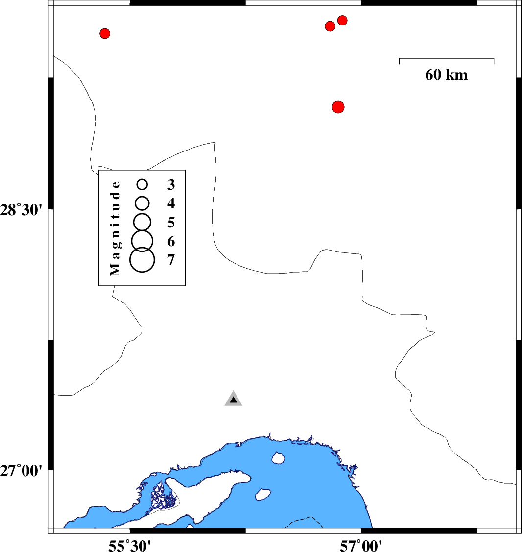 | 2016/07/16 | 02:46:20.5 | 07:16:20.5 | 28.117 | 55.044 | 15 | ML:2.9 | Fars Province, 87 km South-West of Hajiabad | ||