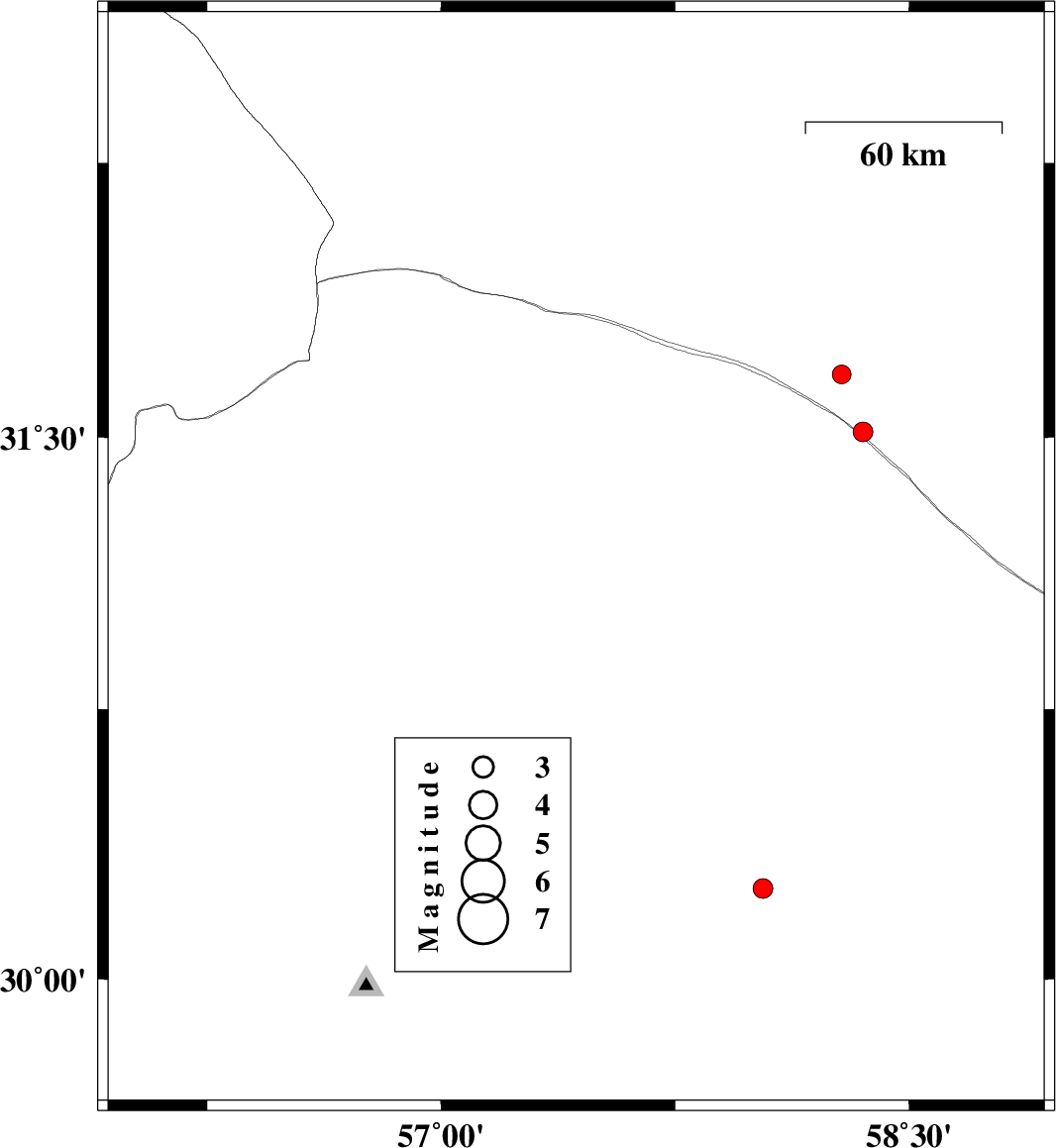 | 2016/07/22 | 02:44:47.2 | 07:14:47.2 | 29.895 | 57.112 | 14 | ML:2.8 | Kerman Province, 44 km South of Kerman |