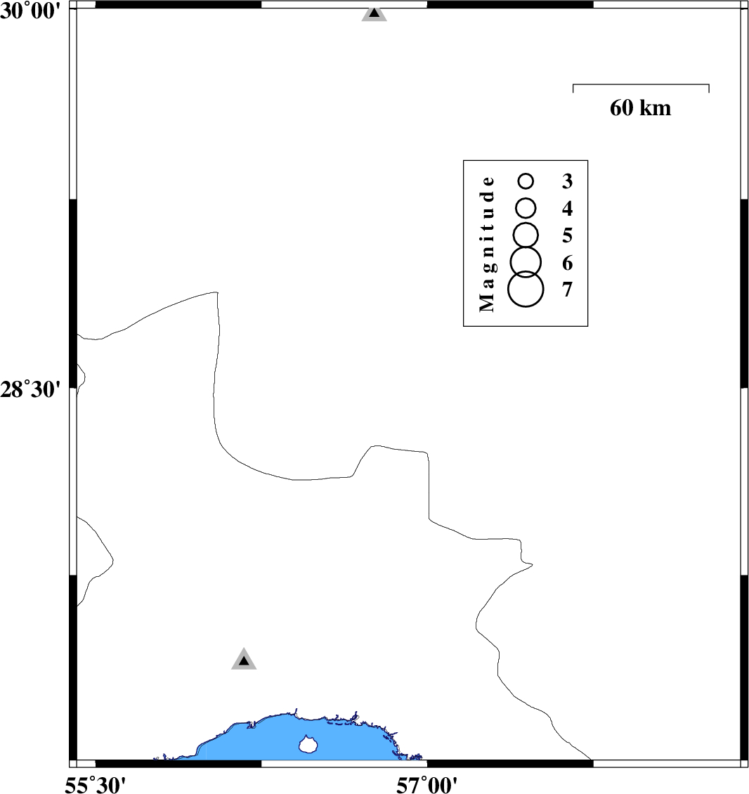 | 2016/08/09 | 06:24:24.0 | 10:54:24.0 | 28.504 | 56.915 | 15 | ML:2.8 | Kerman Province, 83 km South-West of Jiroft | ||