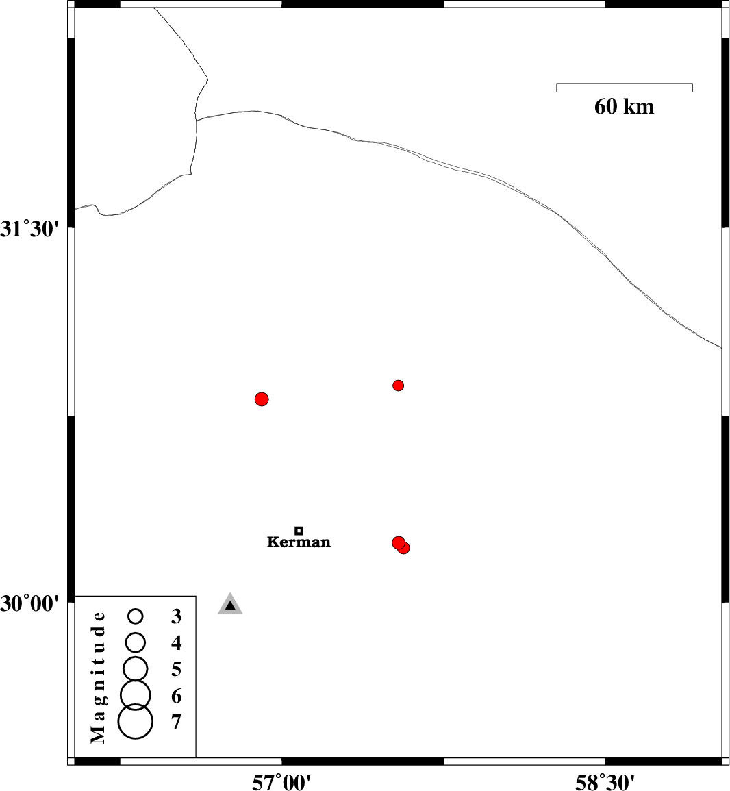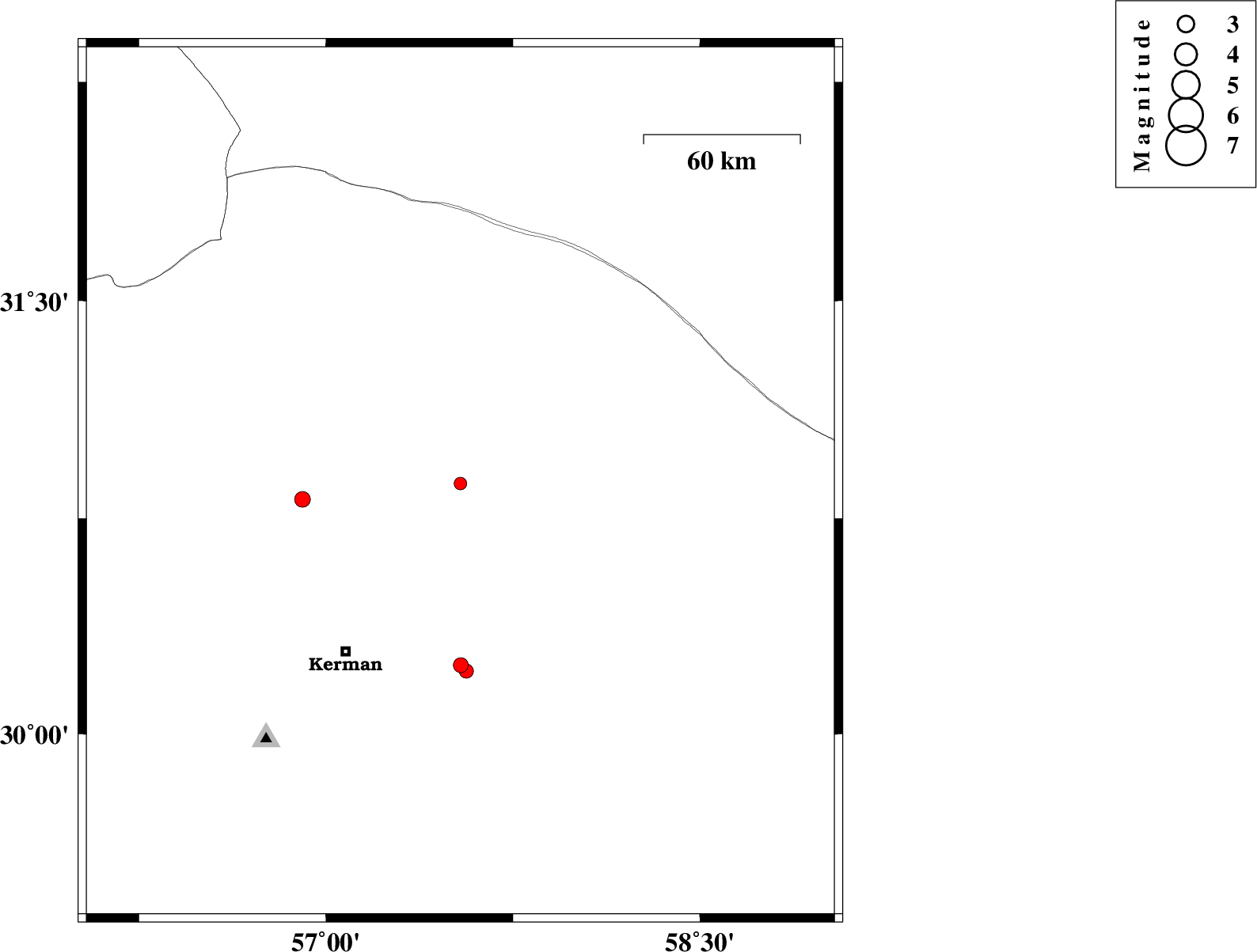 | 2016/09/18 | 11:14:26.1 | 15:44:26.1 | 30.219 | 57.563 | 16 | ML:2.6 | Kerman Province, 47 km -East of Kerman | ||