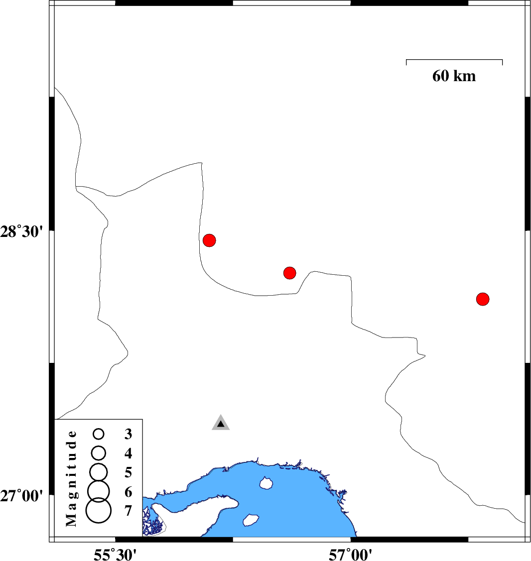 | 2016/10/01 | 08:20:17.3 | 11:50:17.3 | 28.259 | 56.611 | 14 | ML:3.5 | Kerman Province, 70 km -East of Hajiabad | ||