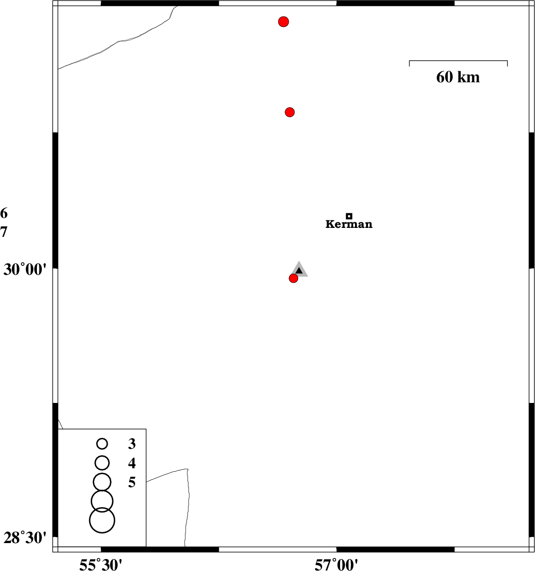 | 2016/10/09 | 14:17:55.0 | 17:47:55.0 | 29.944 | 56.725 | 14 | ML:2.5 | Kerman Province, 15 km -East of Bardsir | ||