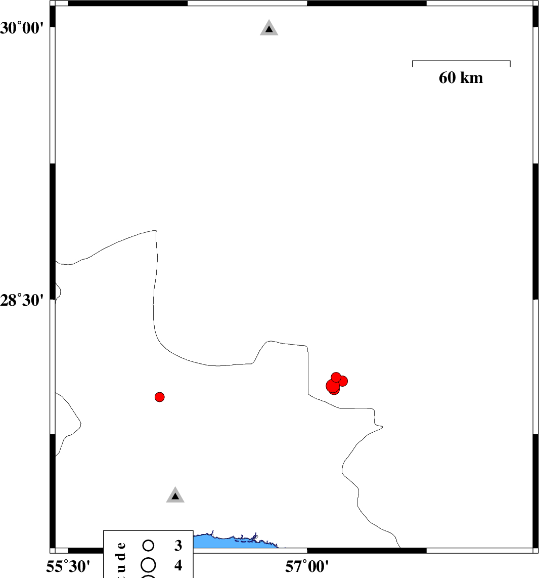2016/10/22 05:46:49.8 09:16:49.8 28.61456.91814 ML:3 Kerman Province, 80 km -West of Jiroft