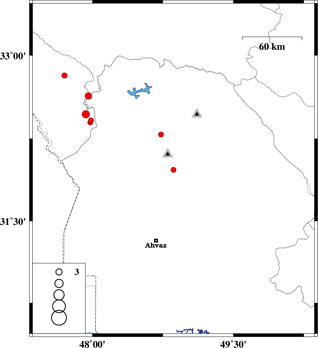 | 2016/10/23 | 13:30:55.6 | 17:00:55.6 | 32.287 | 48.73 | 18 | ML:2.6 | Khoozestan Province, 30 km North-West of Shushtar |