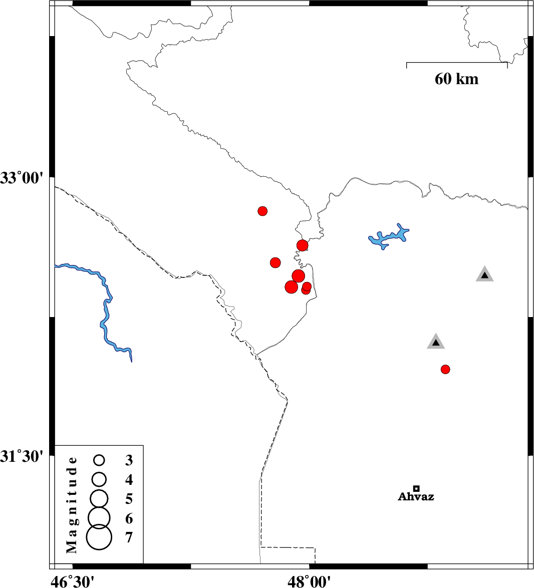 | 2016/10/26 | 05:12:21.7 | 08:42:21.7 | 32.47 | 47.93 | 15 | ML:3.6 | Ilam Province, 40 km -West of Andimeshk | ||