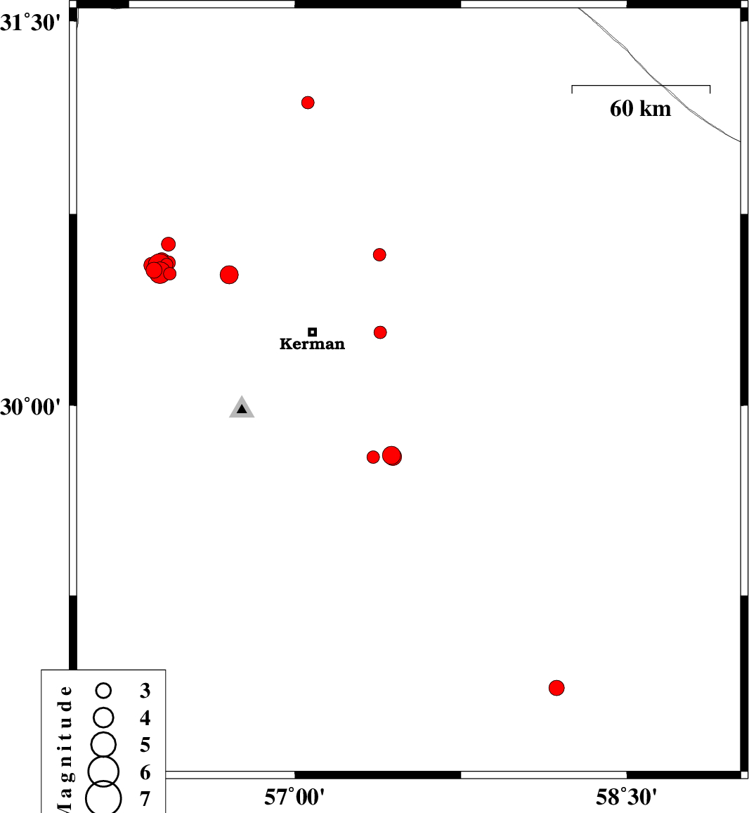 2016/11/10 15:20:09.5 18:50:09.5 30.05857.5977 ML:3.6 Kerman Province, 56 km South-East of Kerman