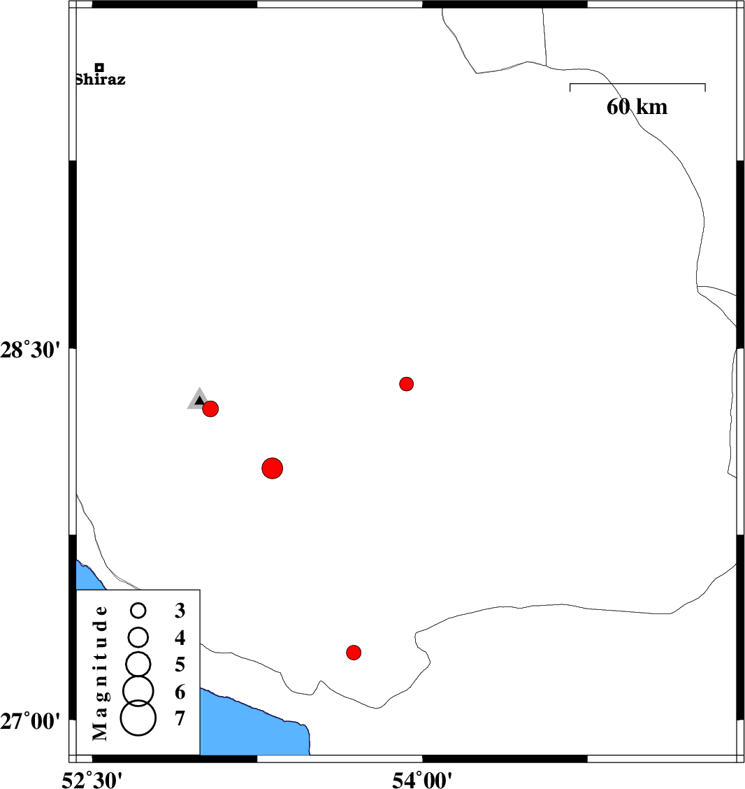 | 2016/10/24 | 08:02:53.8 | 11:32:53.8 | 28.017 | 53.318 | 15 | ML:4.2 | Fars Province, 59 km South-West of Jahrom | ||