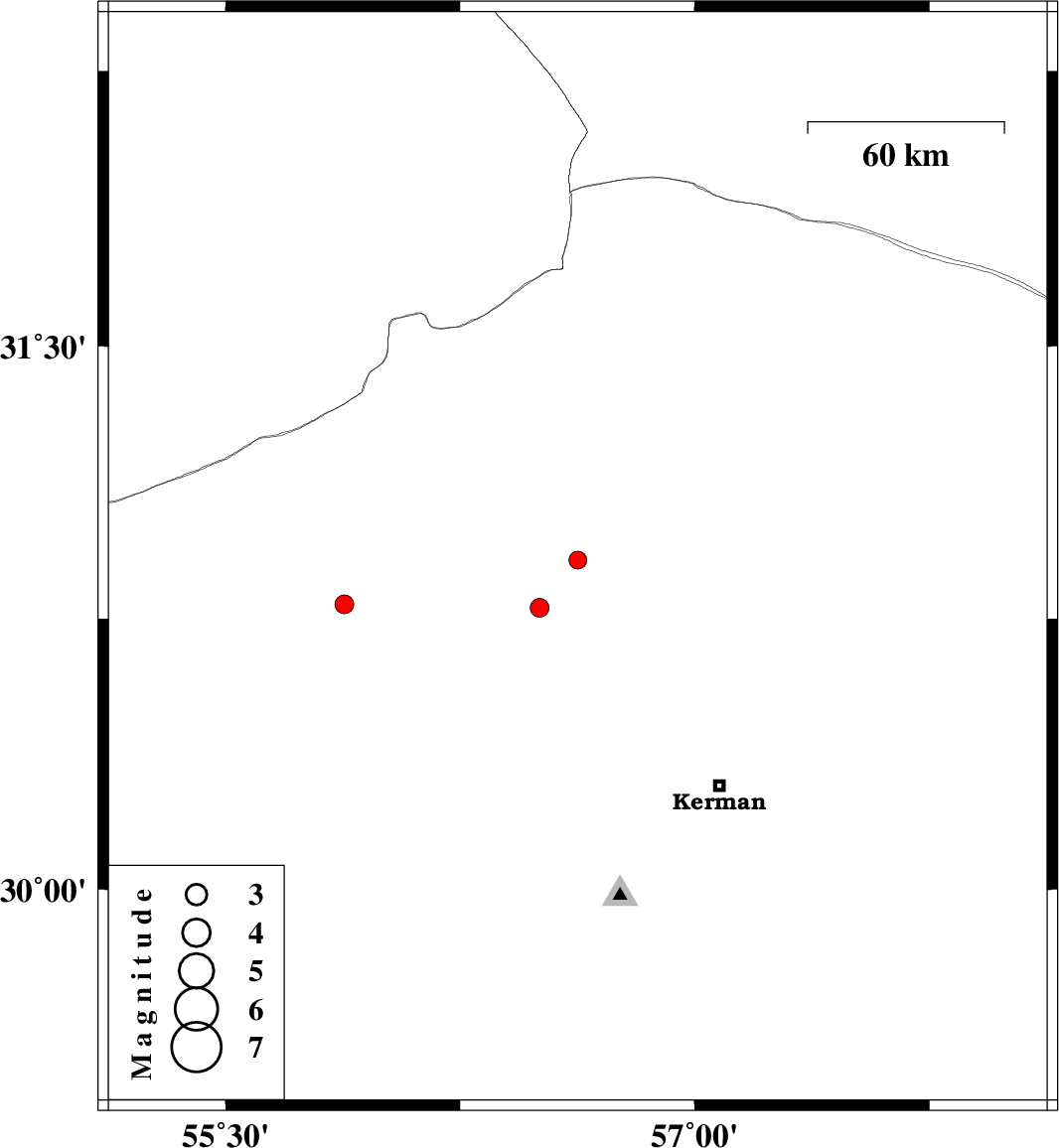 | 2016/11/21 | 06:09:27.8 | 09:39:27.8 | 30.789 | 55.88 | 14 | ML:2.7 | Kerman Province, 44 km North-West of Rafsanjan | ||