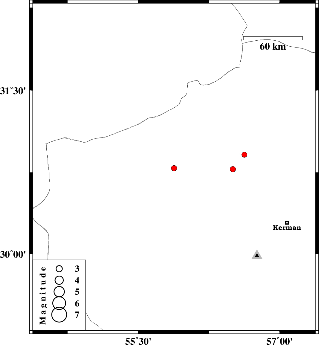 | 2016/11/21 | 06:09:27.8 | 09:39:27.8 | 30.789 | 55.88 | 14 | ML:2.7 | Kerman Province, 44 km North-West of Rafsanjan | ||