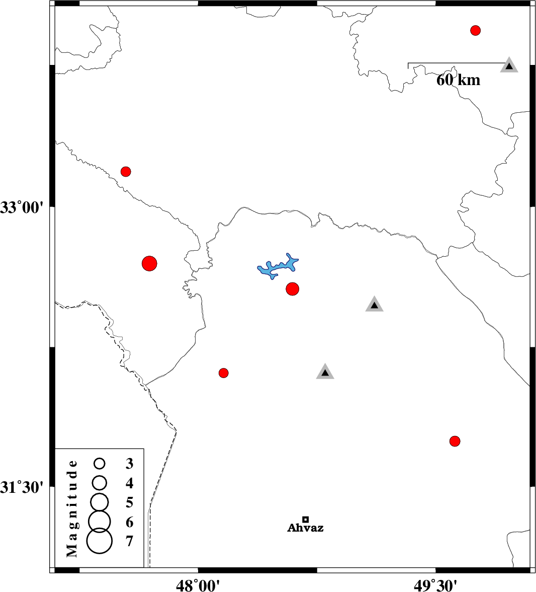 | 2016/11/22 | 16:55:33.9 | 20:25:33.9 | 32.561 | 48.595 | 14 | ML:3.6 | Khoozestan Province, 25 km North-East of Andimeshk | ||