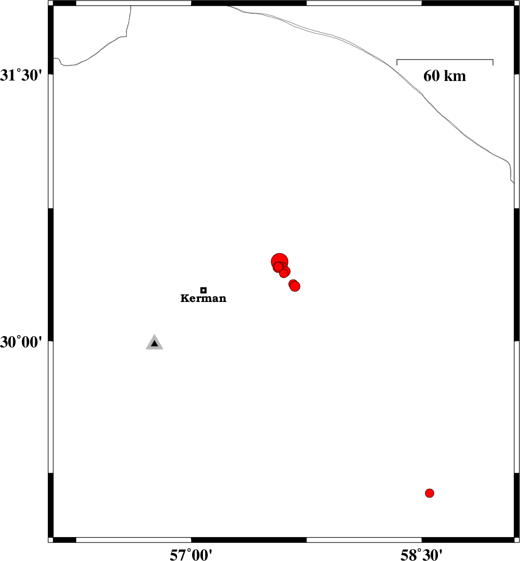 | 2016/12/01 | 10:43:59.3 | 14:13:59.3 | 30.419 | 57.566 | 14 | ML:3.2 | Kerman Province, 49 km North-East of Kerman | ||