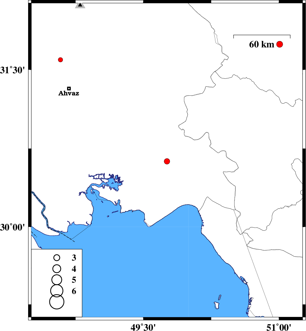| 2016/12/02 | 20:15:18.4 | 23:45:18.4 | 31.593 | 48.583 | 15 | ML:2.3 | Khoozestan Province, 32 km North of Ahvaz | ||