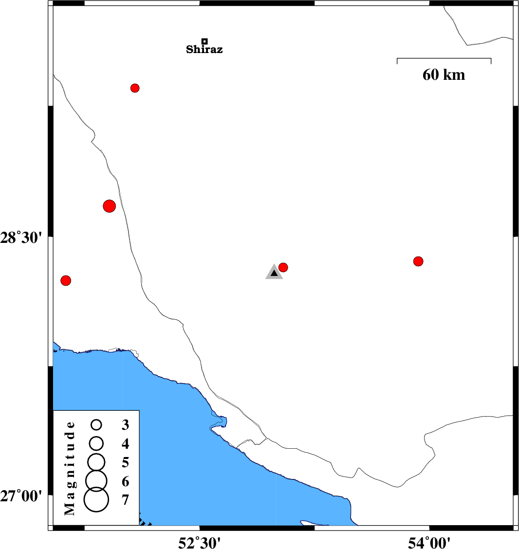 | 2016/12/03 | 12:37:09.1 | 16:07:09.1 | 28.675 | 51.911 | 12 | ML:3.7 | Bushehr Province, 28 km South-West of Farashband | ||