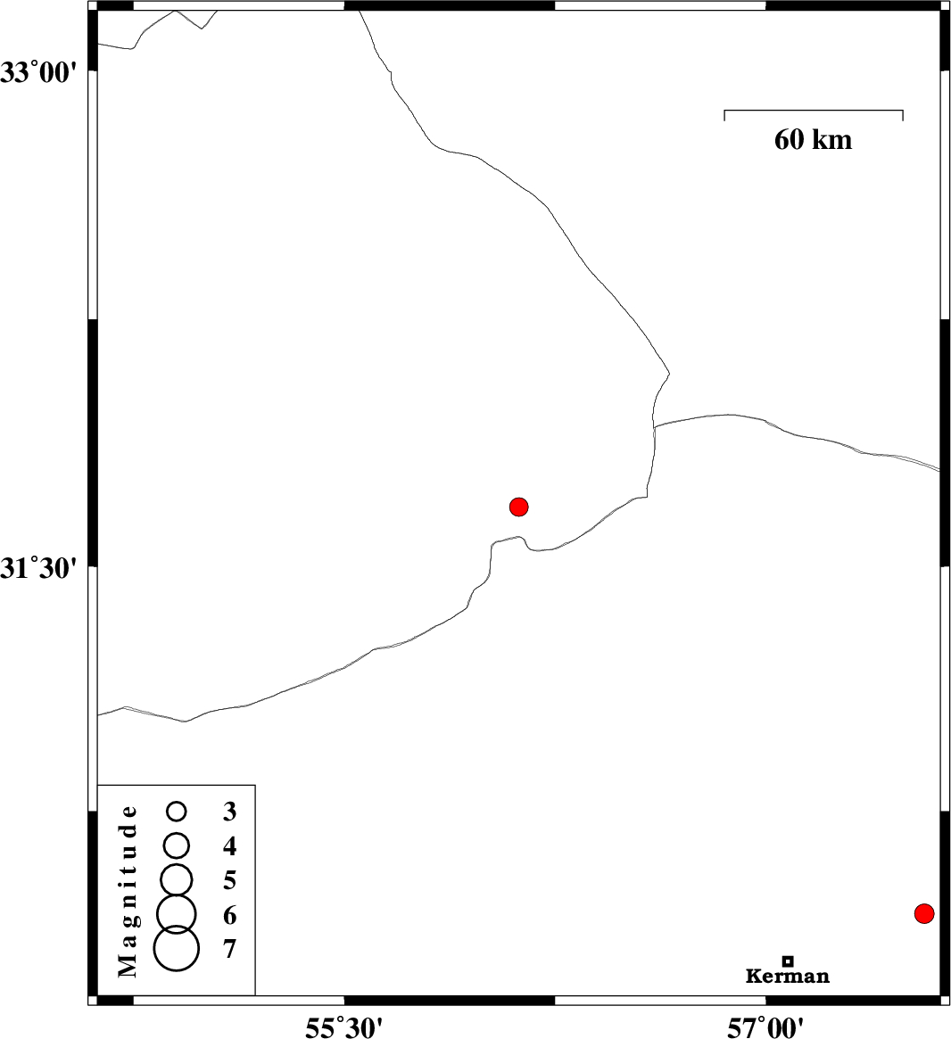 | 2016/12/06 | 13:37:57.5 | 17:07:57.5 | 30.434 | 57.564 | 14 | ML:3.1 | Kerman Province, 49 km North-East of Kerman |