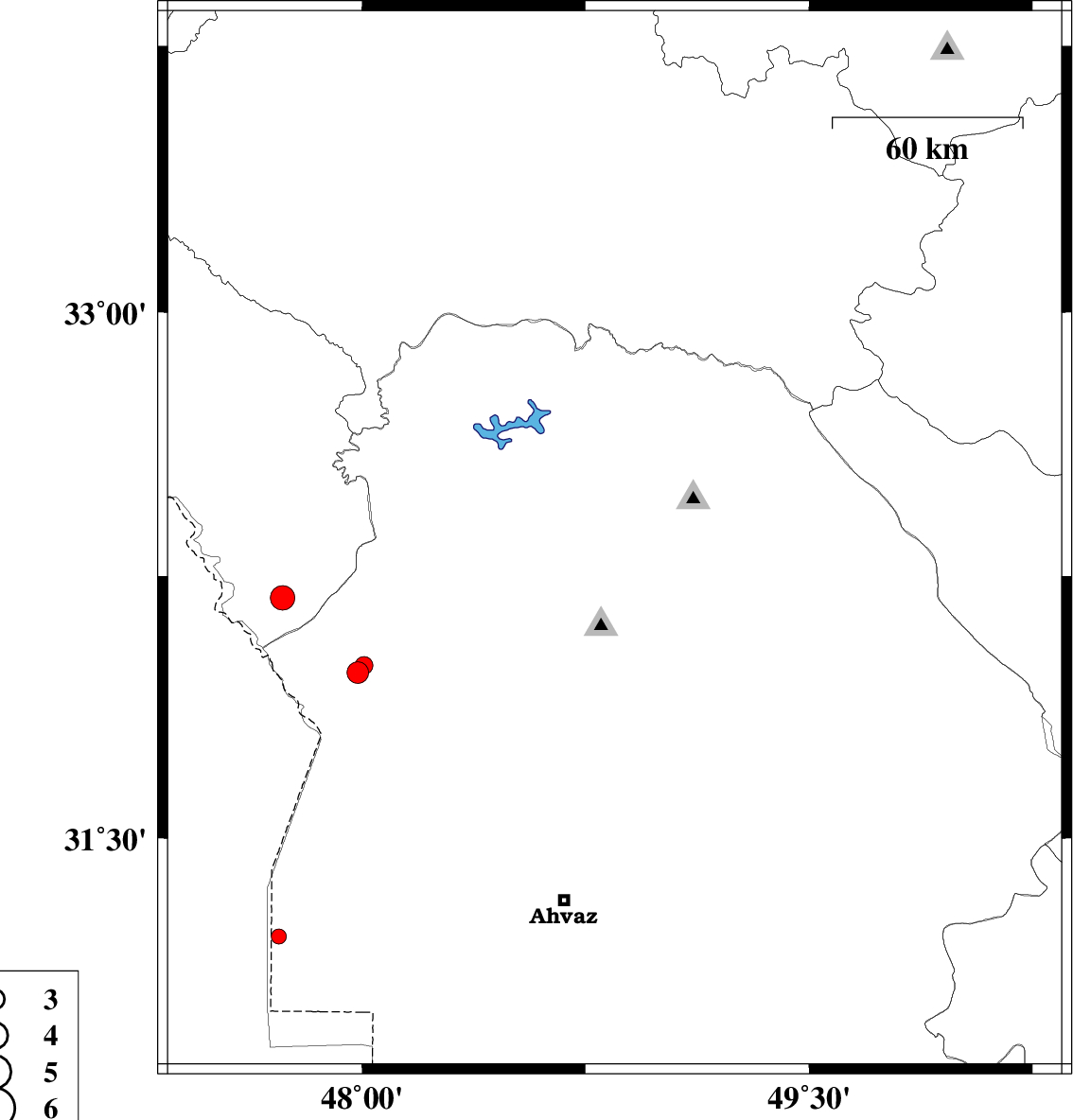 | 2016/12/02 | 20:15:18.4 | 23:45:18.4 | 31.593 | 48.583 | 15 | ML:2.3 | Khoozestan Province, 32 km North of Ahvaz | ||