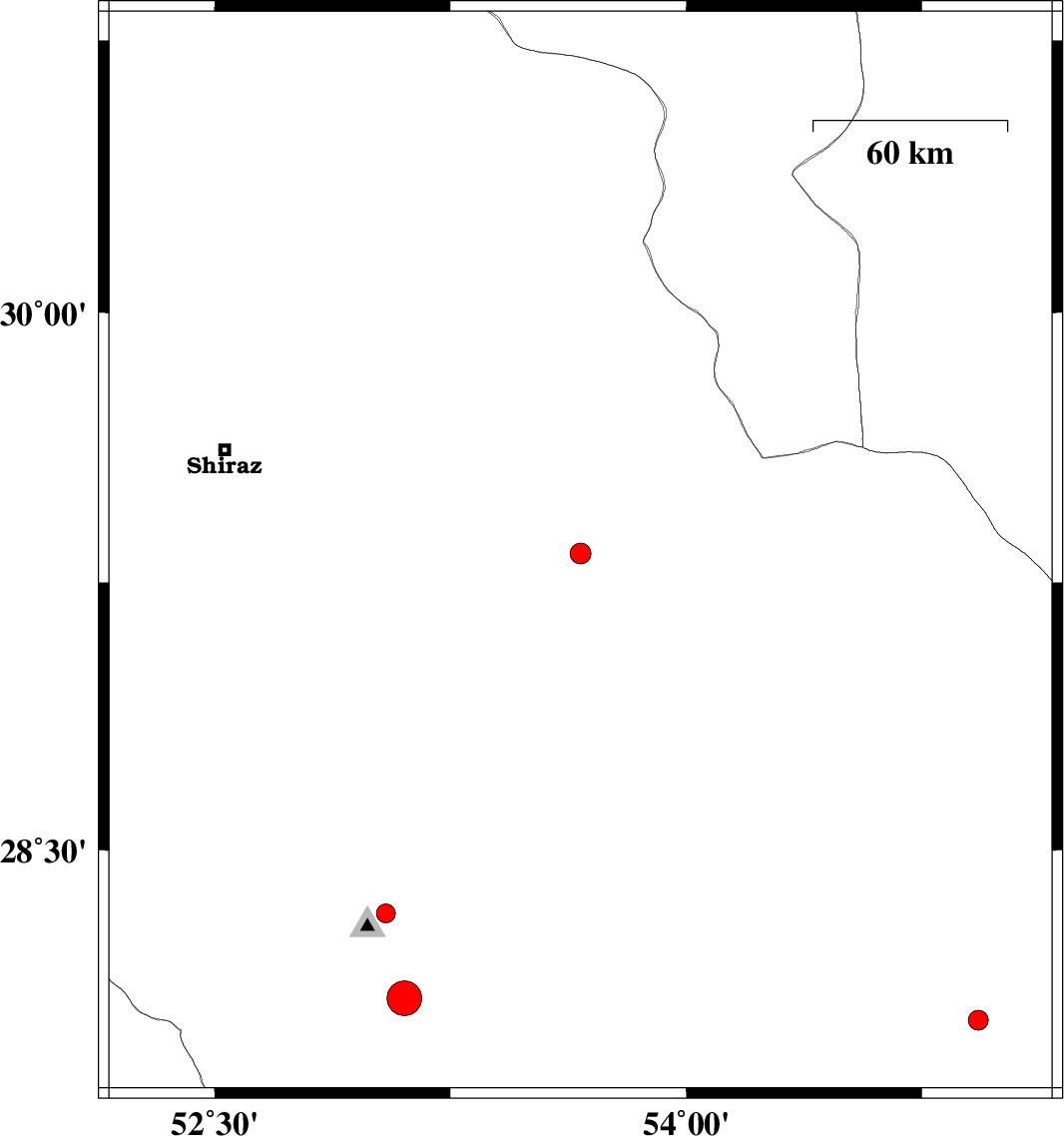 | 2016/12/10 | 20:29:47.2 | 23:59:47.2 | 28.322 | 53.045 | 14 | ML:2.7 | Fars Province, 16 km South of Qir va Karzin |