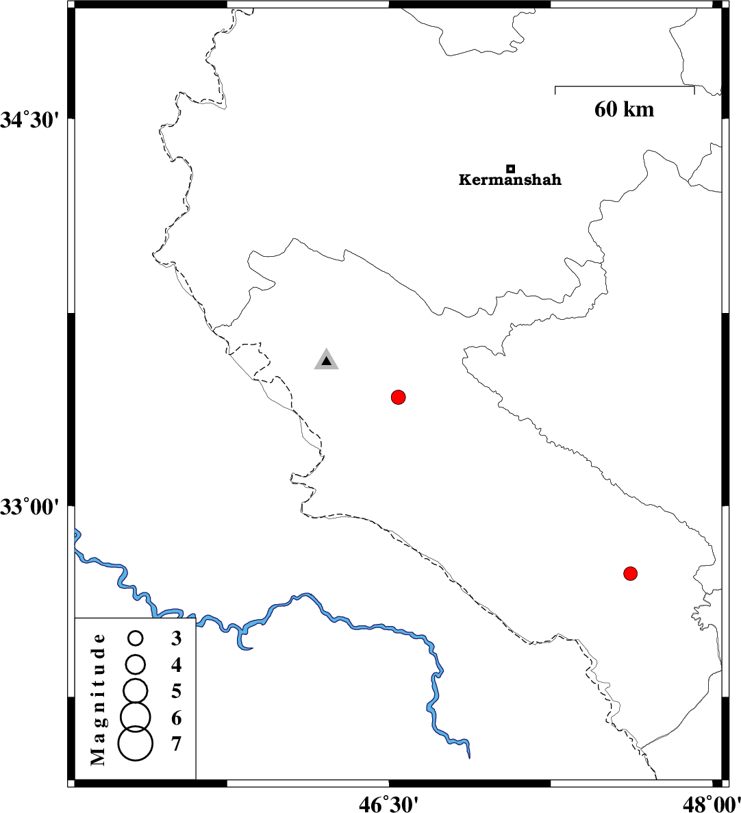 | 2017/01/10 | 02:28:03.2 | 05:58:03.2 | 33.423 | 46.543 | 14 | ML:2.9 | Ilam Province, 26 km South-East of Ilam | ||