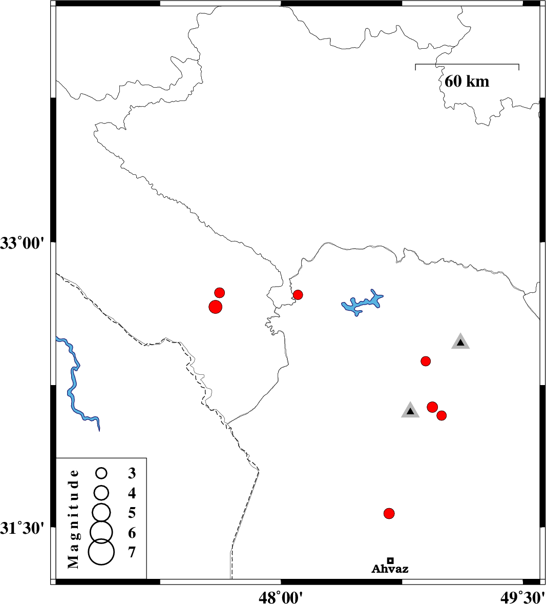 | 2017/01/22 | 07:19:17.6 | 10:49:17.6 | 32.723 | 48.104 | 14 | ML:2.7 | Khoozestan Province, 37 km North-West of Andimeshk | ||