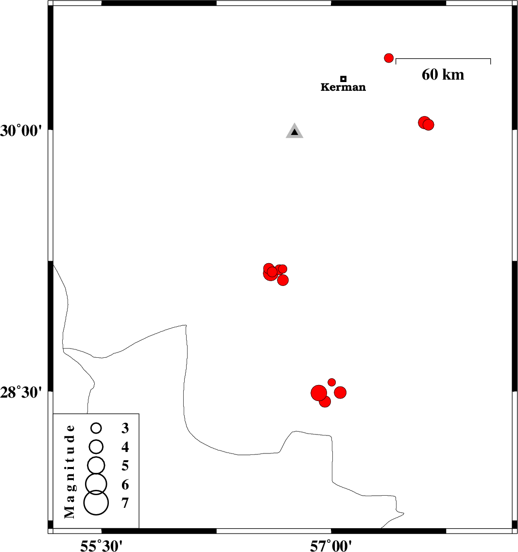 2017/01/26 05:54:37.9 09:24:37.9 30.0457.60914 ML:3.6 Kerman Province, 58 km South-East of Kerman