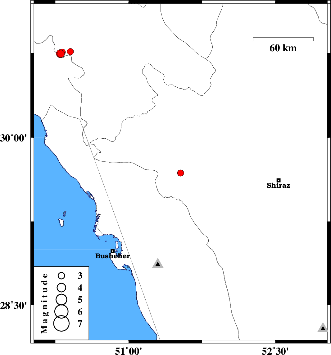 | 2017/02/02 | 07:51:49.0 | 11:21:49.0 | 29.684 | 51.531 | 15 | ML:3 | Fars Province, 14 km -West of Kazerun | ||