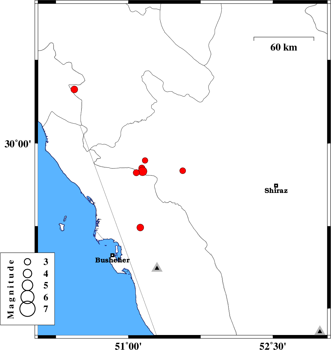 | 2017/02/02 | 07:51:49.0 | 11:21:49.0 | 29.684 | 51.531 | 15 | ML:3 | Fars Province, 14 km -West of Kazerun | ||
