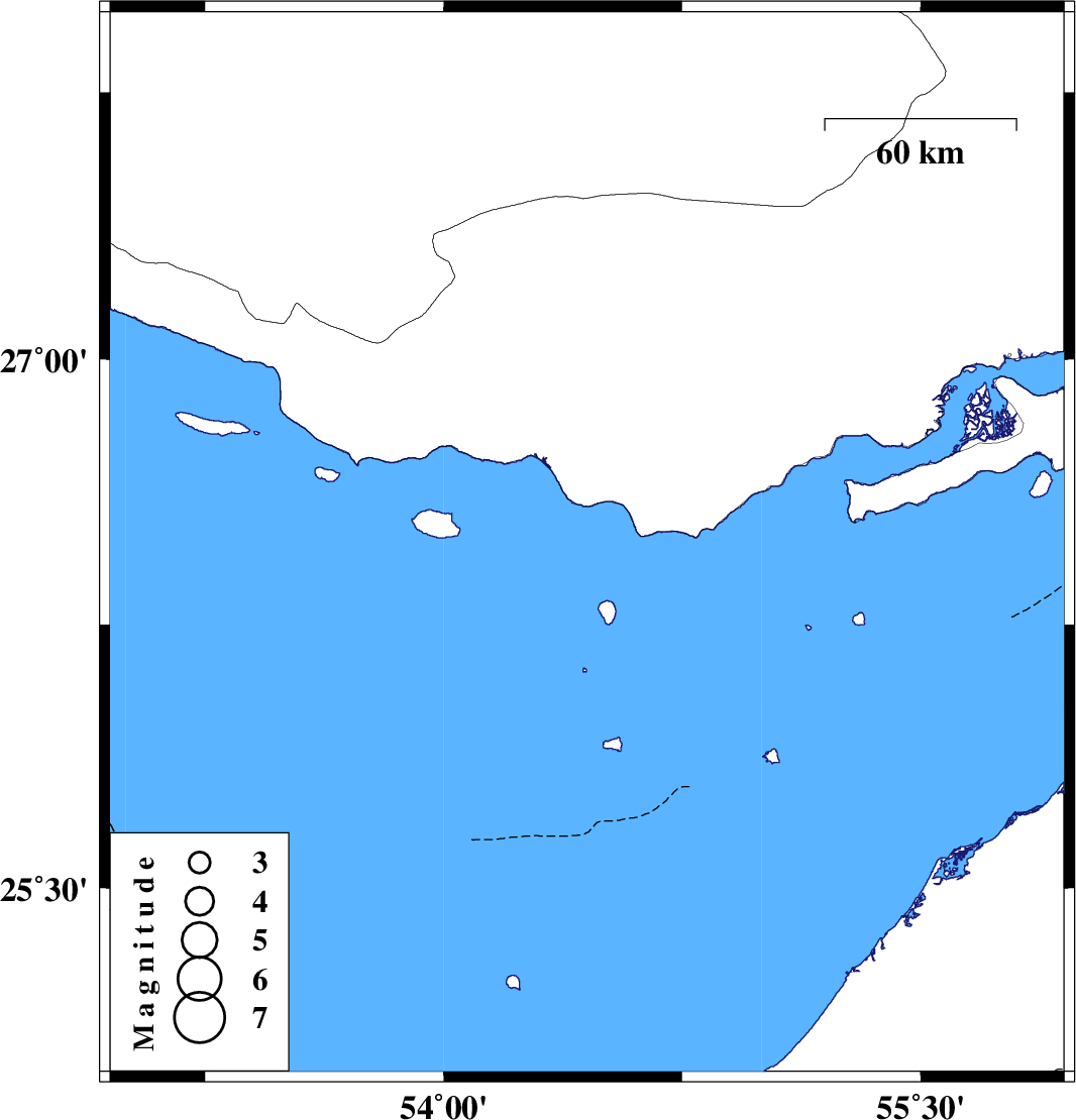 | 2017/04/03 | 16:12:41.2 | 20:42:41.2 | 26.476 | 54.451 | 18 | ML:3.1 | Persian Gulf, 40 km -West of Bandar-e lengeh |