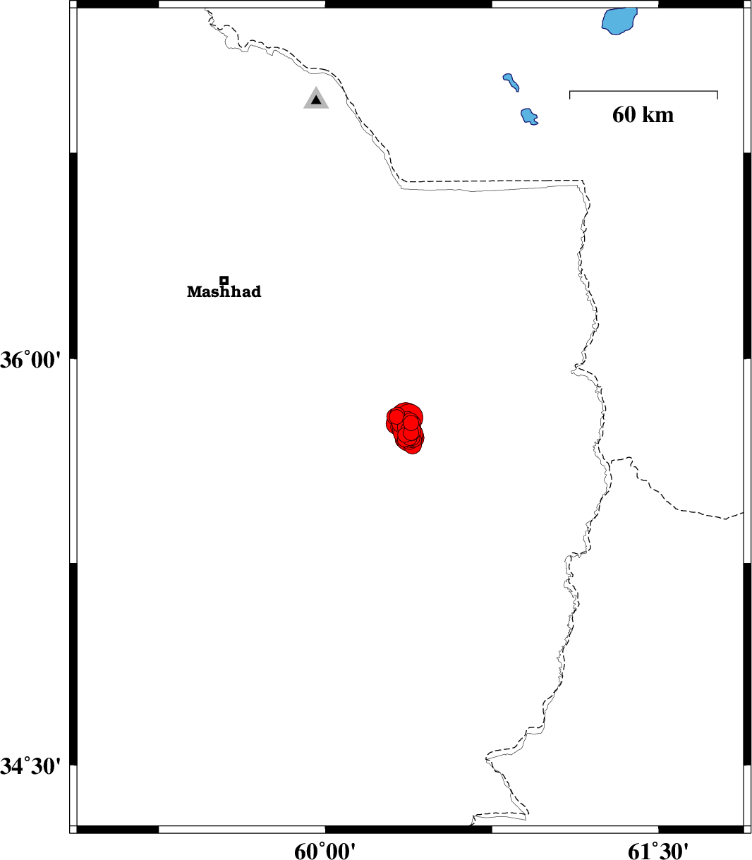 2017/04/07 18:59:52.5 23:29:52.5 35.69960.3715 ML:2.5 Khorasan(center) Province, 47 km -East of Fariman