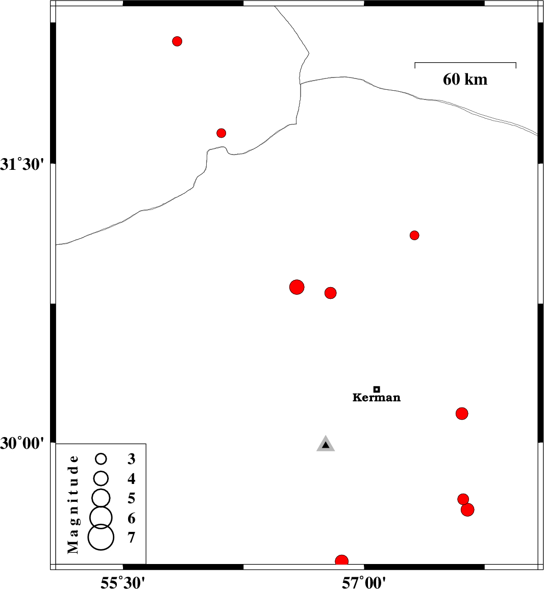 | 2017/04/06 | 12:09:42.8 | 16:39:42.8 | 30.157 | 57.609 | 14 | ML:3.4 | Kerman Province, 53 km South-East of Kerman | ||