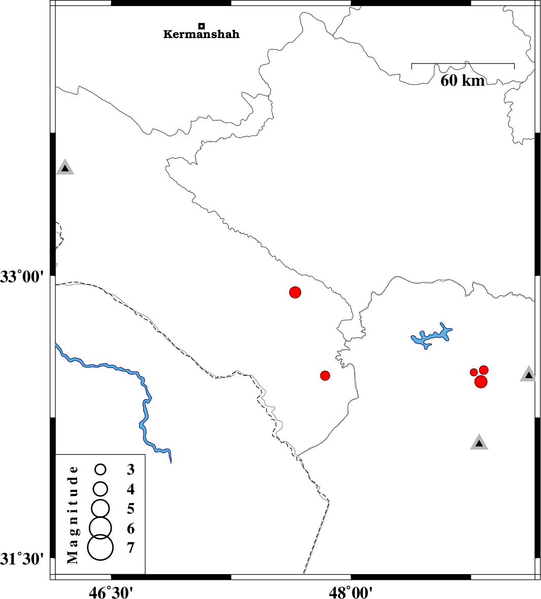| 2017/04/13 | 09:41:21.9 | 14:11:21.9 | 32.912 | 47.65 | 17 | ML:3.3 | Ilam Province, 17 km -East of Abdanan | ||