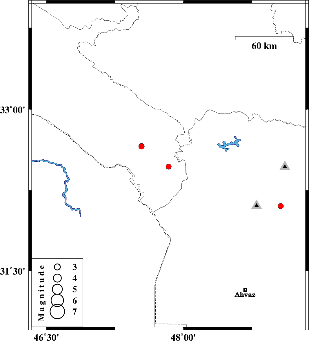 | 2017/03/31 | 05:05:26.7 | 09:35:26.7 | 32.105 | 49.067 | 15 | ML:2.7 | Khoozestan Province, 21 km -East of Shushtar |