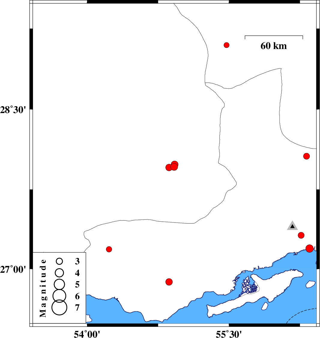 | 2017/04/22 | 08:44:33.4 | 13:14:33.4 | 27.955 | 54.866 | 14 | ML:3.2 | Fars Province, 60 km North-East of Lar | ||