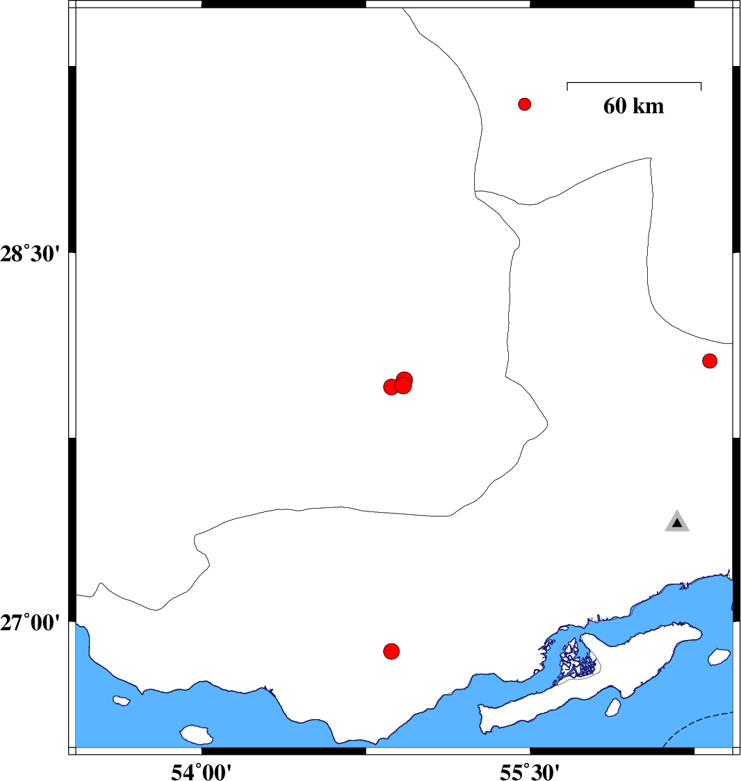 | 2017/04/22 | 08:44:33.4 | 13:14:33.4 | 27.955 | 54.866 | 14 | ML:3.2 | Fars Province, 60 km North-East of Lar | ||