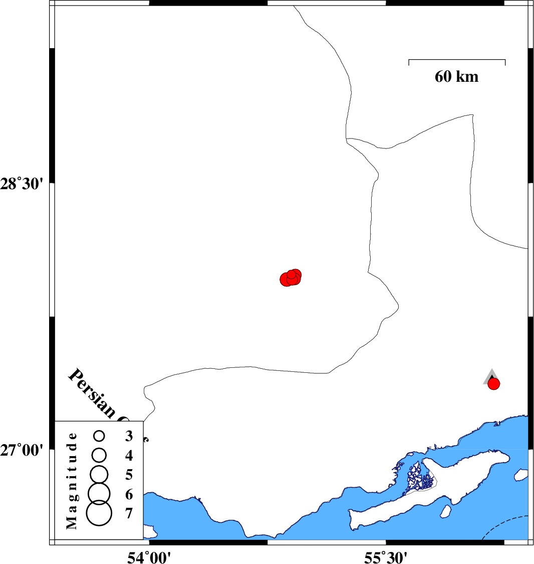 | 2017/04/28 | 13:00:44.8 | 17:30:44.8 | 27.958 | 54.871 | 15 | ML:3.9 | Fars Province, 61 km North-East of Lar | ||