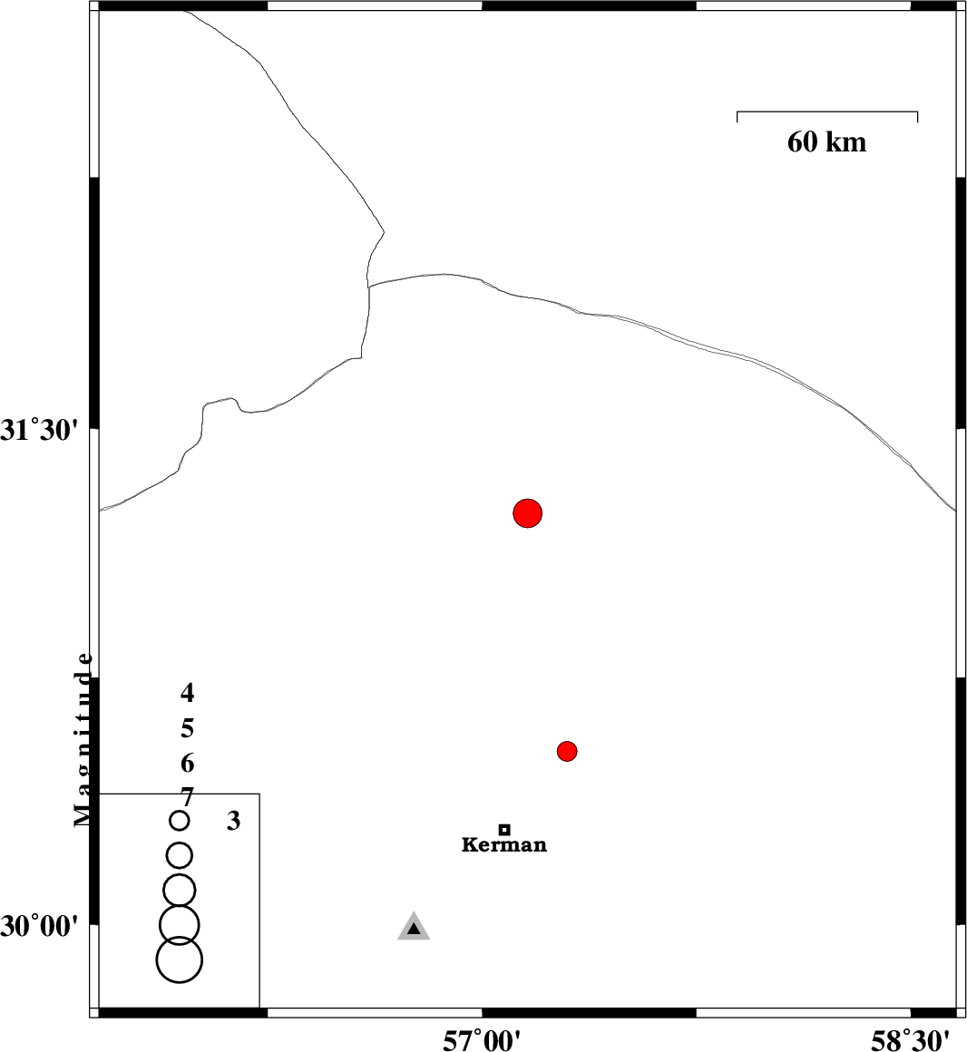 | 2017/05/08 | 16:35:32.2 | 21:05:32.2 | 30.526 | 57.298 | 14 | ML:3.1 | Kerman Province, 34 km North-East of Kerman |