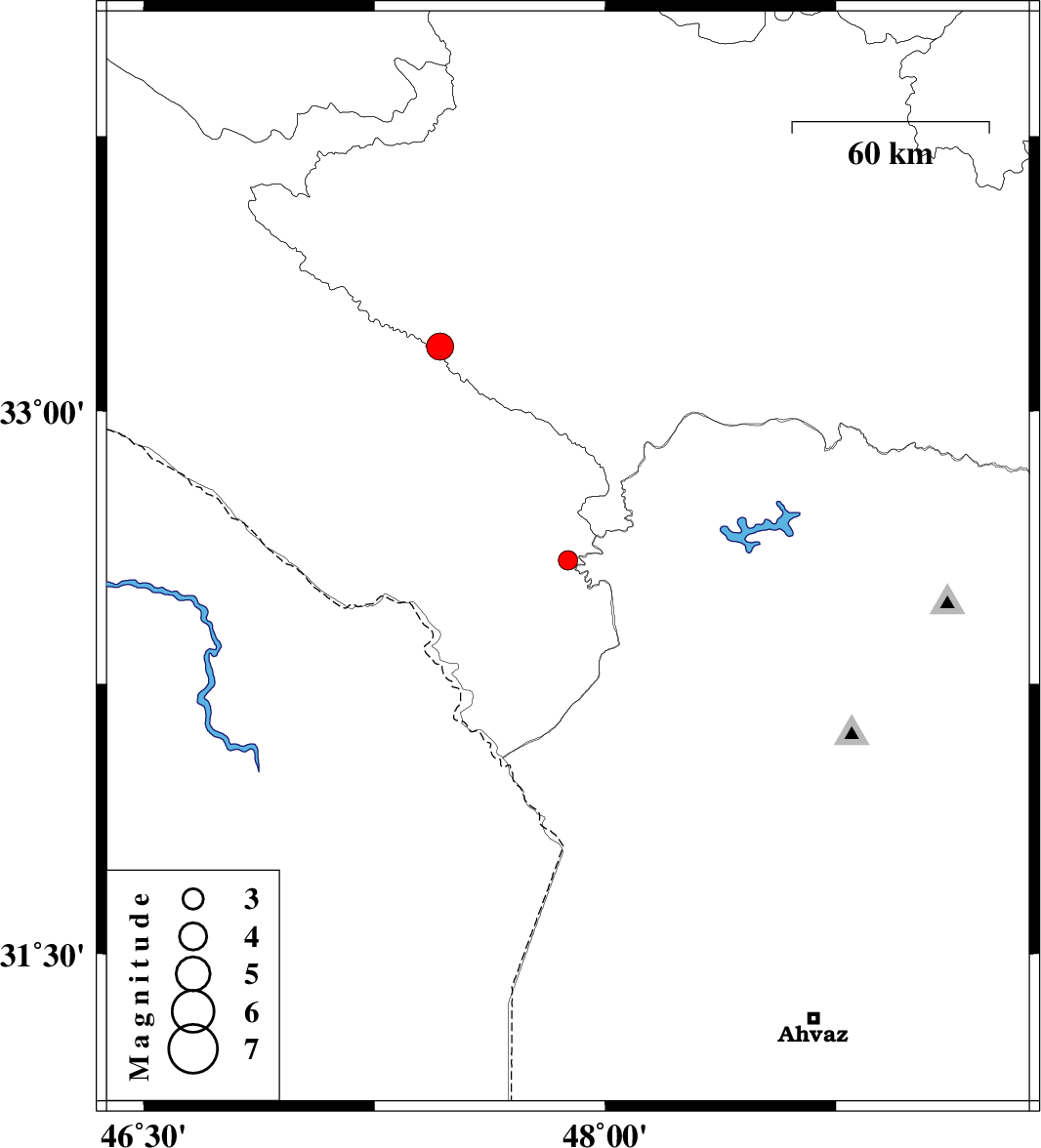 | 2017/05/12 | 18:09:17.1 | 22:39:17.1 | 32.59 | 47.879 | 14 | ML:2.8 | Ilam Province, 47 km North-West of Andimeshk | ||